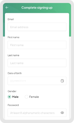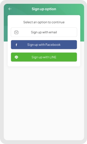 Select an option to sign up your account