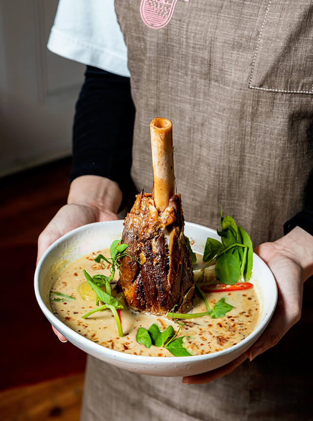 We're passionate with Indonesian flavours. Think Indonesian street vendor-style satays, Balinese-style pork, spicy tempeh and sambals, alongside an alcohol-spiked Cendol and refreshing cocktails served in a whole young coconut.